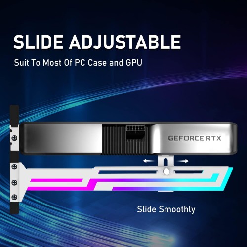 - 【Adjustable RGB GPU Support bracket】Has a sliding support structure to match various CPU and PC cases. Effectively eliminates sagging pressure on graphics cards.