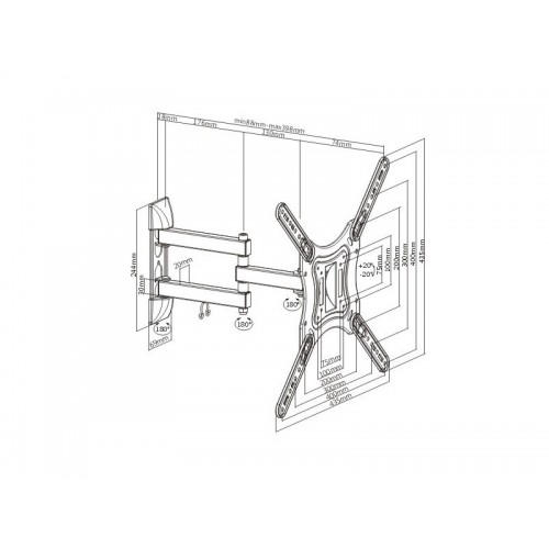 extend, tilt and swivel your TV up to 398mm from the wall in every direction for easy