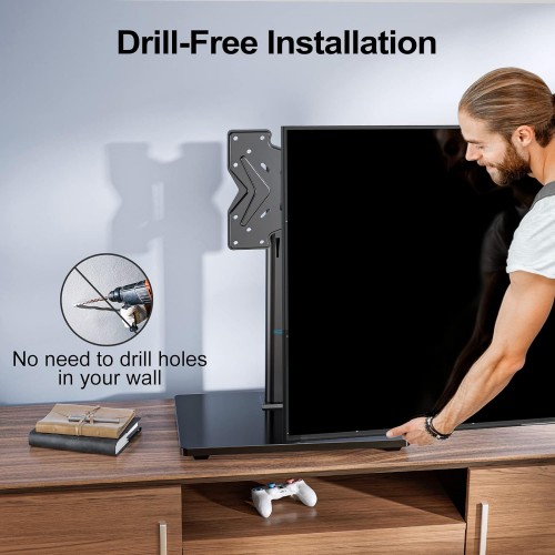 - SIMPLE TO ASSEMBLE : This table top TV stand comes with an easy-to-use instruction manual and hardware for quick and easy installation. Why bother with drilling holes in the wall for a mount when you can choose a stylish TV stand instead.