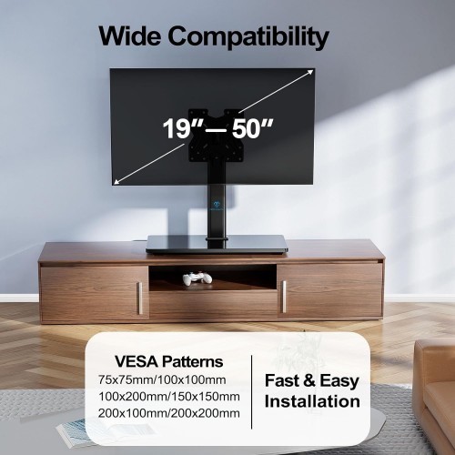- WIDE COMPATIBILITY: Universal TV stand fits most 19" - 50"(including 19''24''28''31''32''39''40''42''43''50'') flat-panel LCD, LED, plasma, curved TVs, and monitors. Compatible with VESA mounting hole patterns 75x75mm (3”x3”) – 200x200mm (8"x8") . Our TV base is compatible with most LG, TCL, Sony, Samsung, Vizio, Sharp, Hisense, Insignia, Panasonic TVs in bedroom, school, office and more.