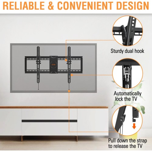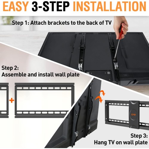 - Easy Installation - With the step-by-step installation instruction and necessary hardware, you can finish the installation in only 3 steps within 10 Minutes. The pulling strap design helps you lock and release your TV breezily and easily.