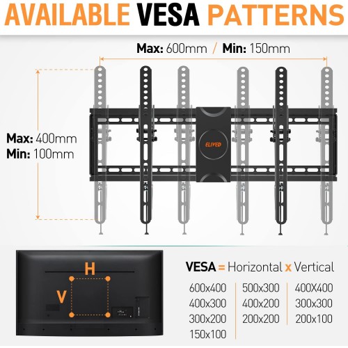Tags: Tilting TV Wall Mount for 37-70" Flat Curved TVs, Low Profile TV Mount Bracket Max VESA 600x400mm, Fits 16", 18", 24" Studs Universal Wall Mount TV Bracket, ELIVED