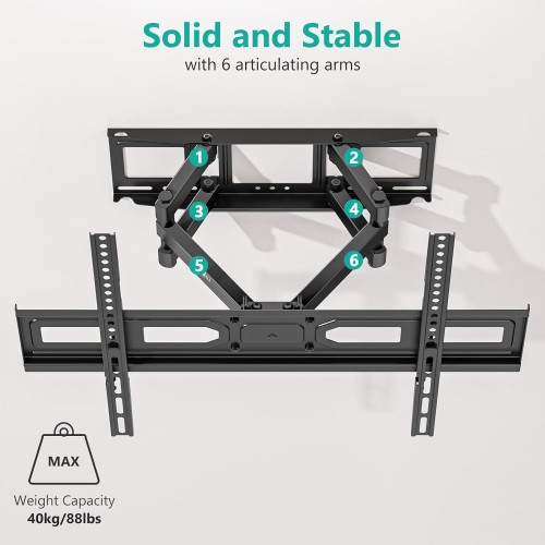 - Compatibility: Full motion TV wall mount bracket fits most flat curved 32”-80” TVs, weighing up to 88 lbs. It is compatible with VESA mounting holes from 100x100mm to 600x400mm.