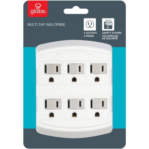 Globe Electric 6-Outlet Multi-Tap Wall Tap, Grounded, White Finish