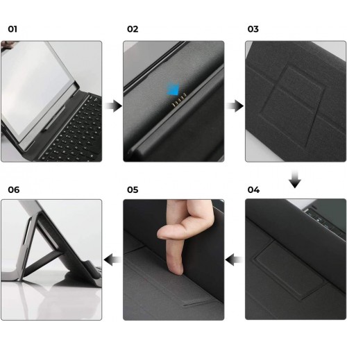 - Ultra Slim And Stylish: Turn your tablet into a laptop with the ultra-thin and stylish tablet docking keyboard. This sleek tablet case with keyboard is designed to keep in line with the simple style of modern life.