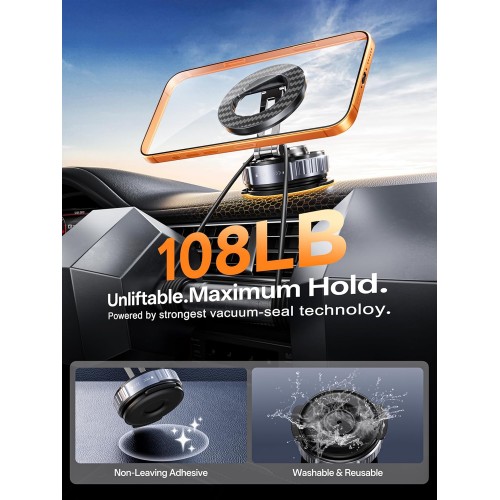 Tags: 2026 Upgraded Car Phone Holder for Magsafe [108LBS Strongest Suction] 360° Adjustable Vacuum Magnetic Phone Holders, Cell Phone car Mount for iPhone 17 Pro Max 16 15 14 13 12 Air Plus