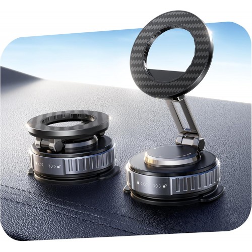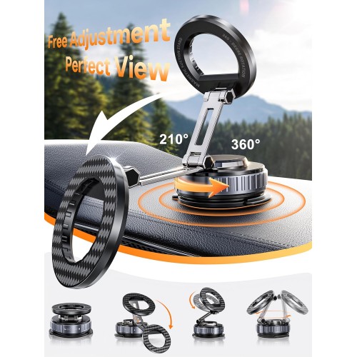 - Complete Articulating Movement: Engineered for ultimate flexibility, this vacuum absorption magnetic bracket features a base that rotates a full 360° and dual-axis arms that fold through a 210° arc. This allows you to precisely position your phone for the perfect view. Switching from portrait to landscape orientation is quick and intuitive, making it ideal for both automotive and office use. Its innovative folding mechanism shrinks the car phone mount by half for compact storage, maintaining a clutter-free environment. Rigorously tested over 5000 times, it guarantees lasting stability and dependable performance.