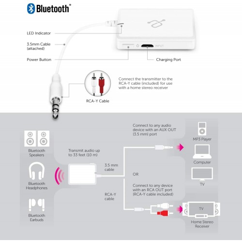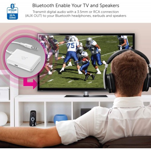 - Add Bluetooth transmitting functionality to TVs, computers and MP3 players with an AUX OUT (3.5 mm) or headset port (3.5 mm)