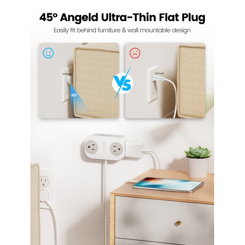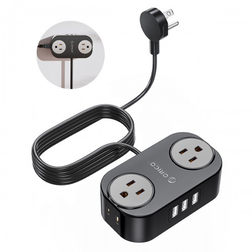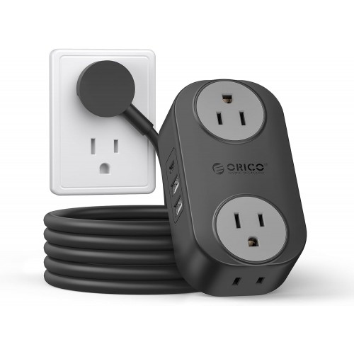- 【45° Flat Plug Power Strip & 5Ft Extension Cord】ORICO extension cord with USB port adopts a 0.39-inch flat plug design, allowing furniture to be placed close to the wall. The 45-degree angle design does not block the bottom socket of the double wall outlet and frees up the socket for other uses. And 5 feet power cord provides sufficient length, suitable for installation behind sofas, bedside tables, dressers and other furniture.