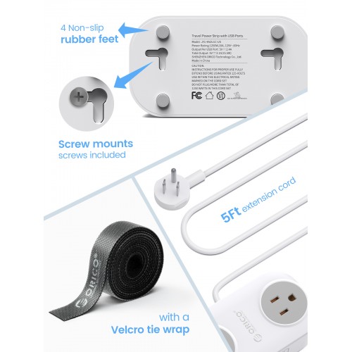 - 【Space-Saving Portable Power Strip】ORICO small extension cord measures 4.37x2.36x1.37 inch and weighs 0.53 pounds, which can easily fit into the packing suitcase. And the compact power strip has screw holes and stickers, so it can be hung on the wall or attached to the side of the table, making it very suitable for use in small spaces.