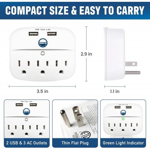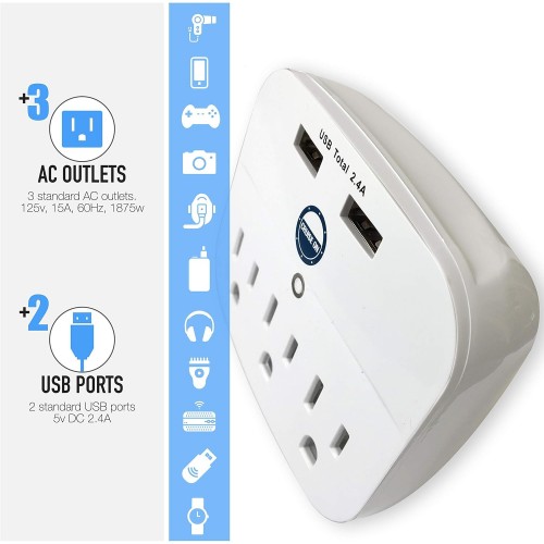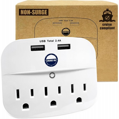 Tags: Cruise Power Strip USB Outlets - Non Surge Protection - Cruise Ship Approved