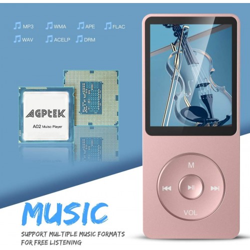 Tags: AGPtEK A02 8GB MP3 Player, Supports up to 32GB, Rose-Gold