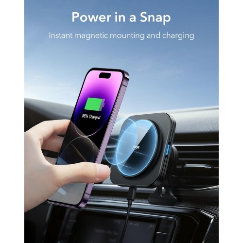Tags: ESR Wireless Car Charger with Magnetic, Compatible with MagSafe Car Charger, Car Accessories, Air Vent Car Phone Holder, Fast Charging, HaloLock Magsafe Car Mount for iPhone 15/14/13/12 Series, Black
