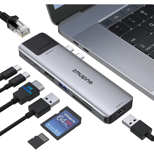 - 8 IN 2 Macbook USB Adapter: This usb c dapter specially designed for 13 inch 15 inch 16 inch inch MacBook Pro 2020/2019/2018/2017/2016, MacBook Air 2018/2019/2020; With this macbook pro adapter,you can easily fulfill your daily use by extending two USB C port to 4K HDMI,Thunderbolt 3 port(100W PD),USB C female port,Gigabit Ethernet,1 * USB 3.0 ports,1 * USB 2.0 ports,SD/Micro SD card readers. Notice: This Macbook adapter doesn't work with Macbook Pro & Air Laptop Cases.