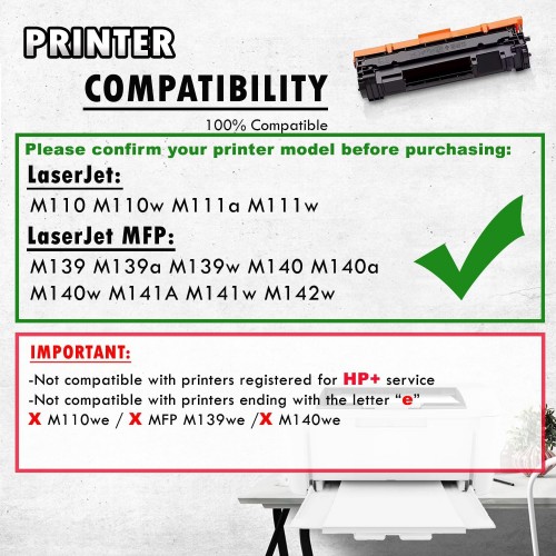 - 4.Compatible with printers: M110 M110w M139 M139w M140 M140w Printers. Page Yield: High Capacity 2000 pages black at 5% coverage, A4 paper, letter. (ISO/IEC standard).