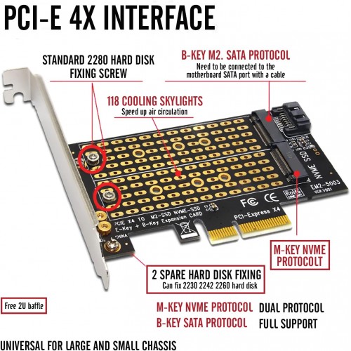 - 2X M.2 NVME(M Key) SSD to PCIe expansion card