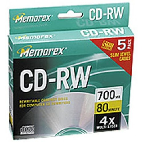 Memorex 700MB/80-Minute 4X Data CD-RW Media (5-Pack Rewrite)