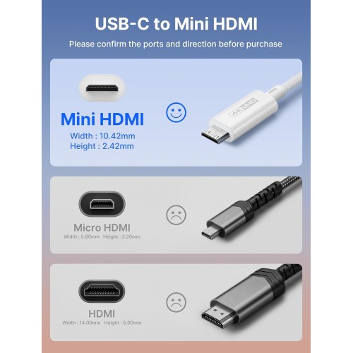 Tags: 10FT USB-C to Mini HDMI Cable, Laptop to Portable Monitor Cable, High Speed 4K Cord (4K@30Hz/2K@60Hz/1080P), Compatible for Portable Monitor, Steam Deck, Laptop, Phone, ROG Ally