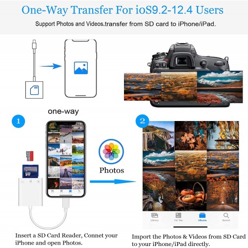- Two-way transmission: 2 in 1 dual card slot compatible sd and micro sd (TF) memory card sd card reader, supports all iPhones running iOS 9.2 and above and ipads running iOS 8.0 or above, you can easily transfer Download photos or videos in sd card directly to iphone or ipad, and share videos or photos with friends and family anytime, anywhere.