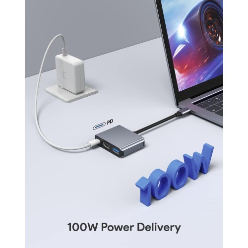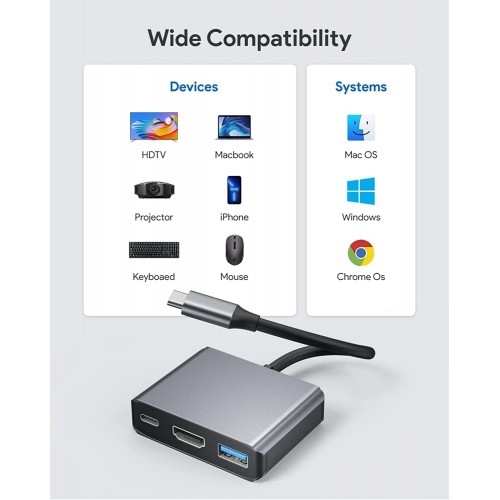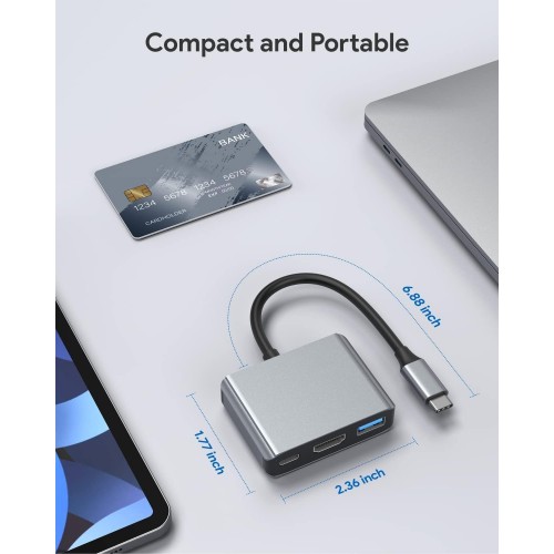 - 3-in-1 USB-C to HDMI Adapter USB Type-C to HDMI / USB-C/ USB 3.0 Multiport Adapter with small size, easy to carry around in pocket. Convenient for home-theater entertainment, office, presentation, exhibition, teaching etc. Lightweight, PLUG and PLAY, provide charging, no extra driver/Software is needed, durable and convenient.