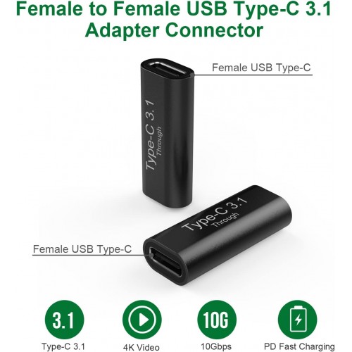 Tags: USB-C to USB-C Female to Female Connector Adapter Support 4K Video, Fast Charging & 10Gbps Data Transfer.