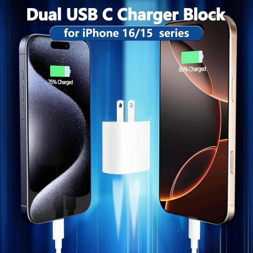 Tags: Dual USB C Charger Block for iPhone iWatch iPad, 2in1 Multiport C Port Fast Charging Block Plug USBC for Apple Watch Series Ultra/10/9/8, Phone 16 Plus/15 Pro Max/14/13/12/11/Xs/Xr/X/8/7/6 1Pack White