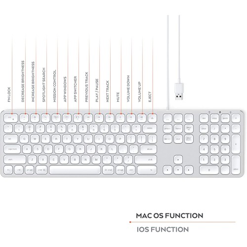 Satechi Aluminum USB Wired Keyboard with Numeric Keypad - Compatible with iMac Pro, iMac, MacBook Pro, MacBook Air and MacOS Device (English, Silver)/USED