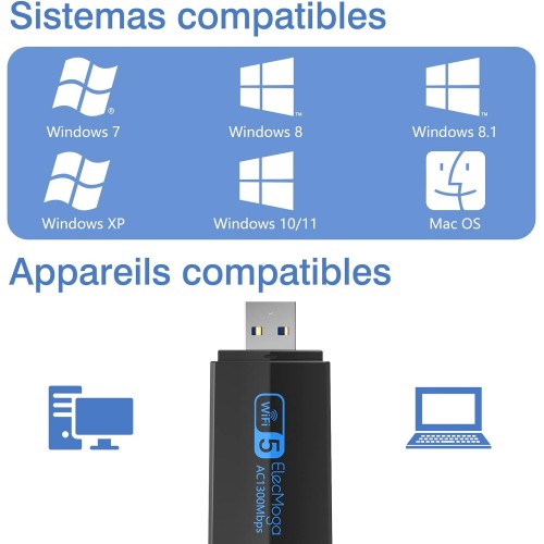 Tags: USB WiFi Adapter, ElecMoga 1300Mbps WiFi Dongle USB 3.0 Dual Band 5G/2.4G Wireless Network Adapter for Desktop Laptop PC, Dual 5dBi Antennas, Supports Windows 11/10/8.1/8/7, Mac OS 10.9-10.15