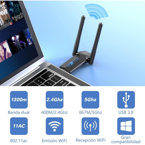 - ⚡ 【1300Mbps USB WiFi Adapter】USB wifi adapter with AC 1300Mbps high wifi speed, faster transmission rate than other WiFi adapters, WiFi speed can reach 867Mbps in 5GHz band and 400Mbps in 2.4GHz band, it is the best companion for online gaming, downloading and watching The best companion for HD video streaming. Bringing you unprecedented high speed and smooth experience.