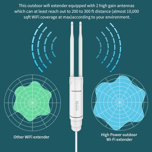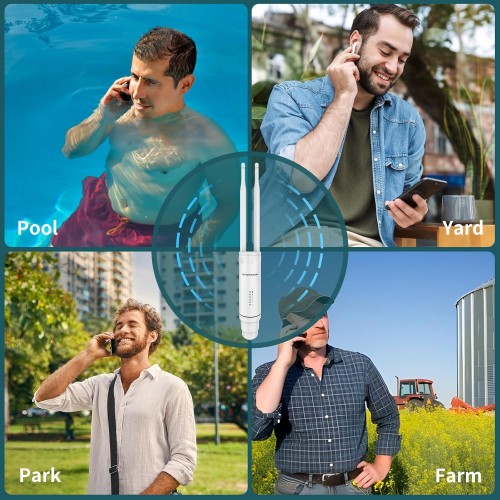 - Stable Outdoor WiFi Coverage: With 2 high gain antennas and PA, outdoor WiFi repeater can transmit in a wide outdoor environment. Providing WiFi service in a big area such as farm, garden, garage, backyard, mall, community, street etc.