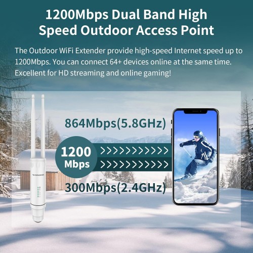 Tags: Outdoor WiFi Extender High Power Outdoor Access Point with PoE, Dual Band 5G 2.4G 1200Mbps Long Range Outdoor WiFi Booster WiFi Range Extender WiFi Repeater Outdoor with Ethernet Port, IP66 Waterproof