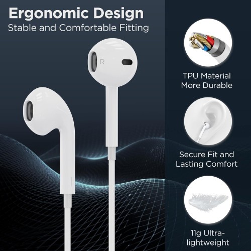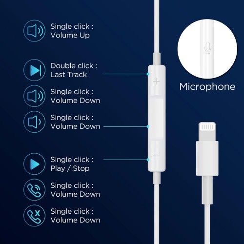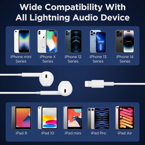Tags: Apple Earbuds for iPhone Headphones Wired Lightning Earphones [Apple MFi Certified] Built-in Microphone & Volume Control Headsets Compatible with iPhone 14/13/12/11/XR/XS/X/8/7/SE/Pro/Pro Max