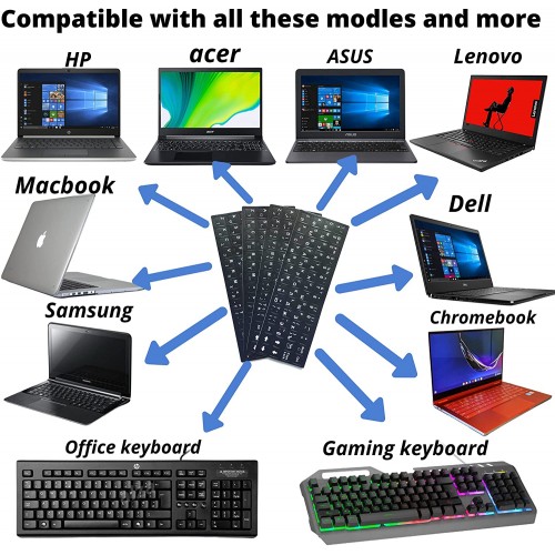 - Compatible with, the English keyboard stickers are compatible with different keyboards Desktops, Laptops and Notebooks. Includes
